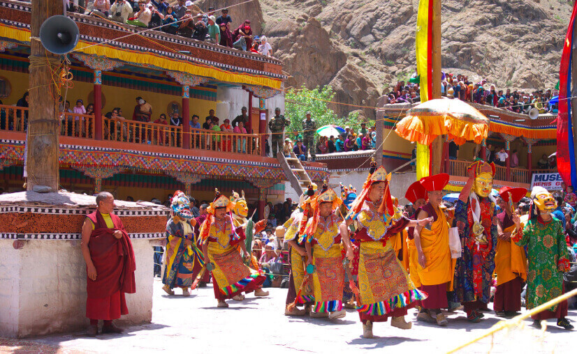 The festival takes place in Hemis Gompa, the largest and richest Buddhist monastery in Ladakh. It is recommended to reach the Gompa by dawn, when ceremonies begin and the Thangka of Rimpoche Dadmokarpo is displayed in all its glory to the beat of drums, clash of cymbals and blowing of the long-horns.
